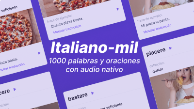 Además de analizar exhaustivamente las palabras más importantes que los principiantes en el idioma necesitan aprender, también contratamos a los profesores de italiano nativos de los reconocidos cursos de Italy Made Easy para crear auténticas frases de ejemplo con audio. De esta manera, puedes aprender todas estas nuevas palabras en contexto, obteniendo una comprensión intuitiva y más profunda de cómo se usan en la vida real.